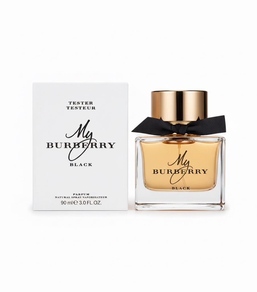 My Burberry Black follows the same codes of craftsmanship, innovation and appreciation as the iconic Heritage Trench Coat. An intense and sensual reinterpretation by renowned perfumer Francis Kurkdjian and Christopher Bailey, My Burberry Black travels back to a London garden amidst a gathering storm; heavy rain contrasting with the warm and captivating flora. The fragrance fuses the scent of sun-drenched jasmine flower and peach nectar with a touch of rose. This signature rose note at the heart of My Burberry is given a sweet and inviting candied twist, while rich amber patchouli rounds off the scent for a deep and captivating finish. The rich, amber-coloured bottle is finished with a hand-tied black gabardine knot and set with a dark, elevated horn-look lid, inspired by the buttons of the Burberry trench coat.