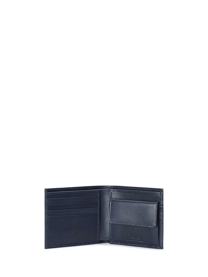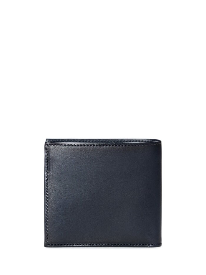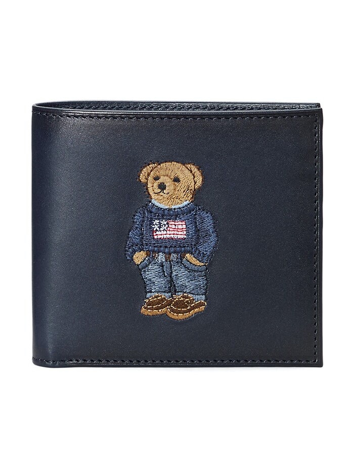 The world’s best-dressed bear, wearing Ralph Lauren’s iconic flag sweater, is embroidered at the front of this leather billfold coin wallet
