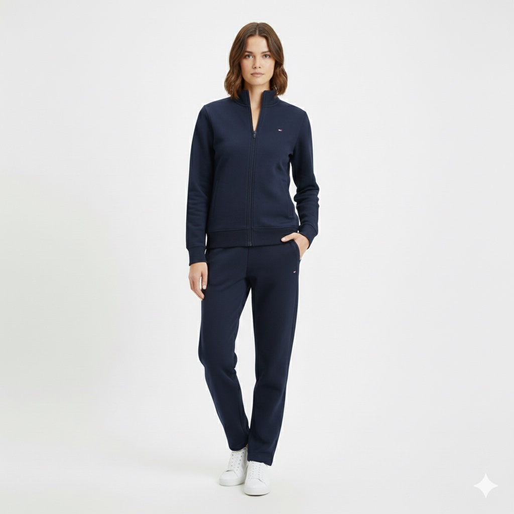 This Tommy Hilfiger tracksuit offers a blend of comfort and sporty elegance, perfect for casual wear, travel, or light exercise.